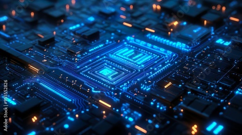 Futuristic digital circuits in glowing blue ideal for crafting a cutting-edge tech wallpaper design