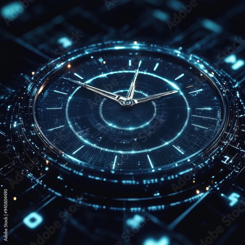 Futuristic Digital Clock Interface With Glowing Blue Lines.