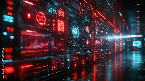 Futuristic digital dashboard wall