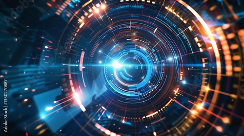 Futuristic digital tunnel; data streams, glowing; technology background; website header