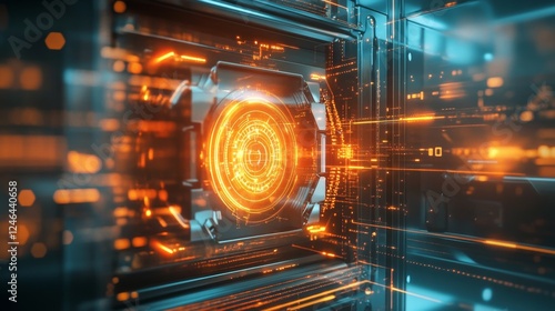 Futuristic Digital Vault with Biometric Scanner and Glowing Elements