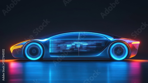 Futuristic Electric Car with Neon Lights and Data Display