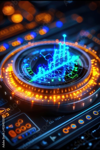 Futuristic graphic display showcasing dynamic data visualization and vibrant interactive elements on a sleek digital interface.