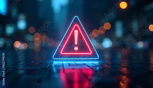 Futuristic illuminated digital warning signs