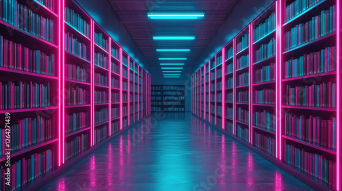futuristic library with glowing shelves and vibrant lighting creates captivating atmosphere