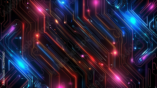 Futuristic Neon Circuit Board with Glowing Lines Digital Technology Background