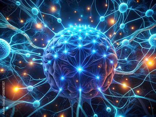 Futuristic Neural Network Visualization with Glowing Synapses and Brain Signals