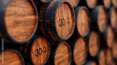 Futuristic Oil Barrels Market Prediction Data Visualization in with Copy Space, Selective Focus Foreground