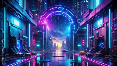 Futuristic Sci-Fi Portal: Glowing Neon Night Cityscape Gateway