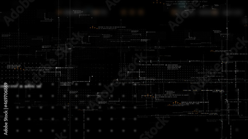Futuristic simulation of 5G network concept, artificial intelligence quantum physic matrix particles deep learning performing analytic computational head up display