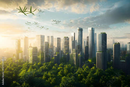 Futuristic smart city powered by green energy and sustainable mobility solutions
