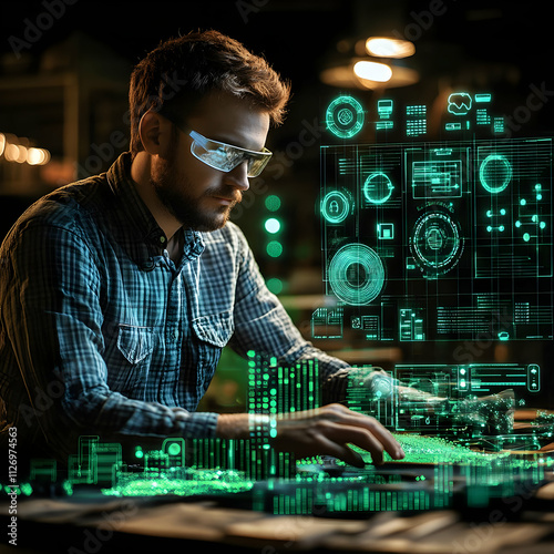 Futuristic Tech Illustration: Engineer at Work