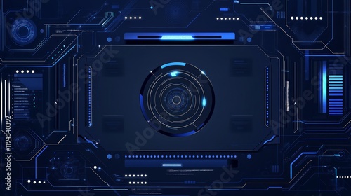 Futuristic tech interface, digital display, blue glowing circuits, data streams, background. Use Tech website banner
