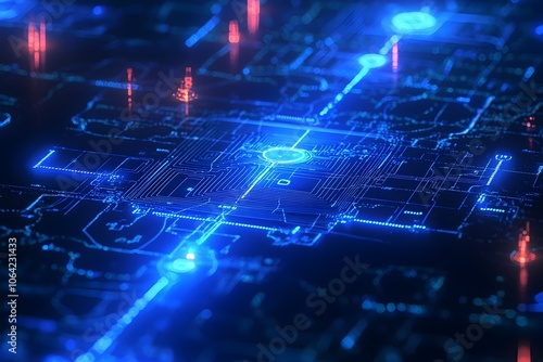 Futuristic Transportation Network with Digital Map Overlay and Glowing Blue Circuits