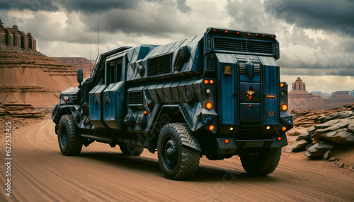 Futuristic Truck in new style, strong Armor. Generative AI.