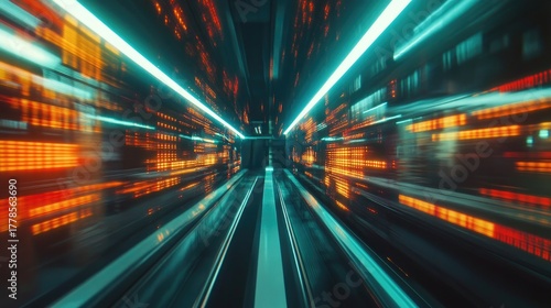 Futuristic tunnel vision with vibrant neon lights and speed.