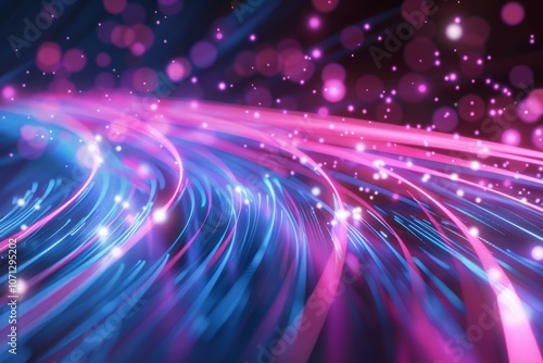 Futuristic wallpaper showcasing high-speed moving neon wave lines in pink and blue with bokeh effects, symbolizing data transfer