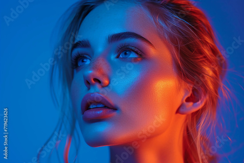 Futuristic Woman Model Face listening to music