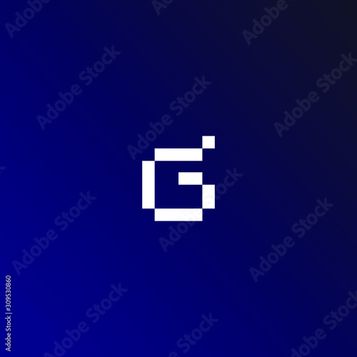 g Initial Letter Logo Design with Digital Pixels in Blue Purple Colors.