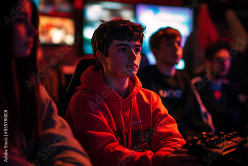 Gamer focused on popular title during intense gaming session in local gaming lounge
