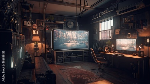 Gaming room with hightech technology computer. Generative AI Technology