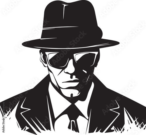 Gangster in a hat and sun glasses vector illustration, SVG