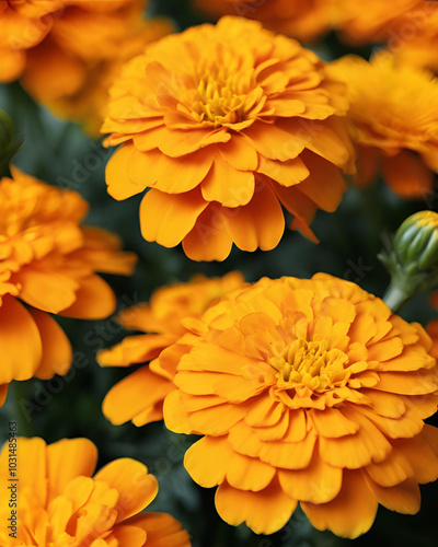 garden flowers, yellow blossoms, lush marigolds, garden landscape, blooming petals, floral abundance, sunny garden, golden petals, flower bed, nature's glow, marigold field, botanical blooms, garden c
