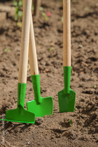Gardening tools tools on the ground