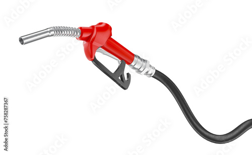 Gasoline pump nozzle in red in realistic 3d render with transparent background