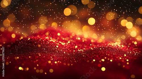 Generate an image of red and gold sand powder and sprinkles arranged in a celebratory pattern