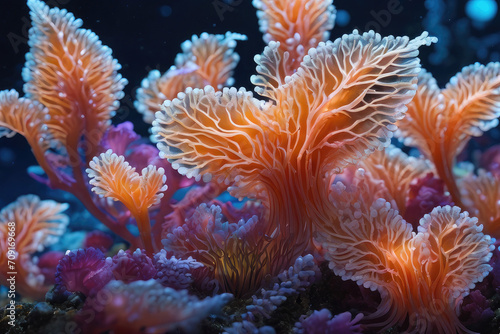 Generative AI Beautiful view of underwater plants, fish and corals at night, beautiful view of coral sea plants and fish at night, Beautiful underwater night view, marine plants, fish, coral, sea