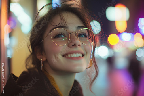 Generative AI Image of Trendy Fashionable People in Vibrant Nighttime Urban Streets with Stylish Outfit Bokeh Lights