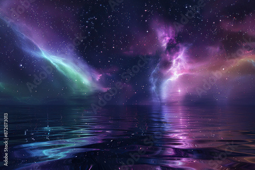 Generative ai on theme of beautiful northern lights, bright aurora borealis winter in atmosphere