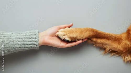 Gentle Connection Between Human Hand and Dog Paw on Soft Background