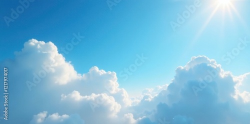 Gentle wispy clouds drift across radiant blue, sky, delicate, cloud