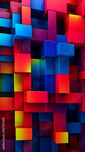 Geometric Abstract Image Pattern Background, Interlocking Squares in Primary Colors, Texture, Wallpaper, Background, Cell Phone Cover and Screen, Smartphone, Computer, Laptop, 9:16 Format - PNG