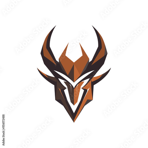 geometric bighorn head logo featuring sharp angles in brown, black, and white tones. Ideal for bold and dynamic branding.