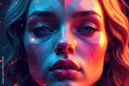 Geometric face pattern with sharp angles and lines, illusion, monochrome