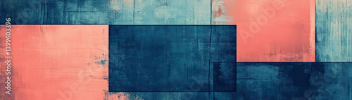 Geometric Grunge: A distressed, textured artistic composition showcases a harmonious interplay of color and form with rectangular blocks. The composition creates visual depth and aesthetic appeal.