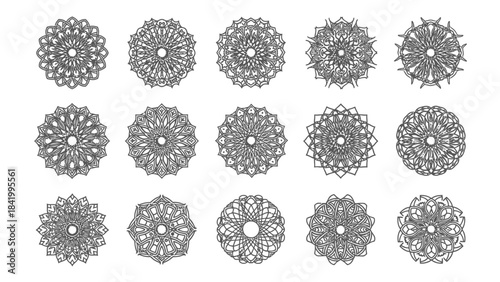 Geometric pattern collection abstract circular designs on a clean white backdrop