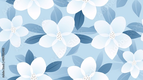 Geometric shapes and Camellia japonica flower pattern in a minimalistic setup with pastel blue and white colors, ideal for promotions and stock photos