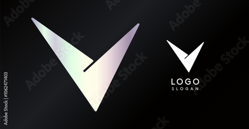 Geometric triangular V letter, abstract dynamic logo, modern holographic gradient monogram for gaming, technology, urban art, innovation, streetwear brand, sci-fi cybersport. Vector illustration