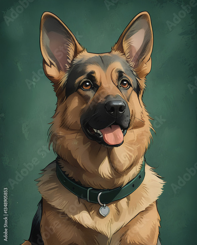 German Shepherd on a dark green background looking confident and alert