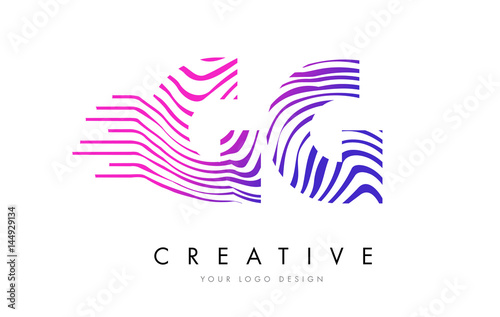 GG G G Zebra Lines Letter Logo Design with Magenta Colors