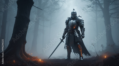 Ghostly Knight in Ethereal Forest Setting