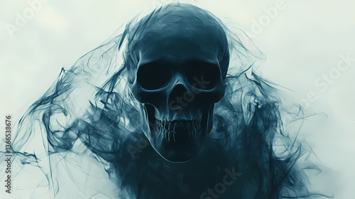 Ghostly skull silhouette shrouded in ethereal veil. Dreamlike Veil. Illustration