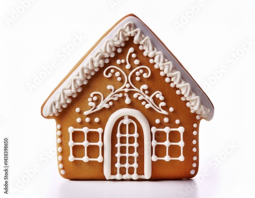 gingerbread house shaped cookie isolated on white white background