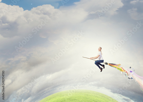 Girl fly on broom