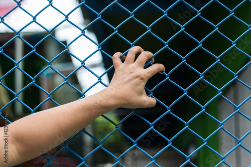 Girl hands on the wire fence