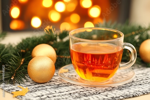 girl in oversized sweater sipping tea by the fireplace Cozy